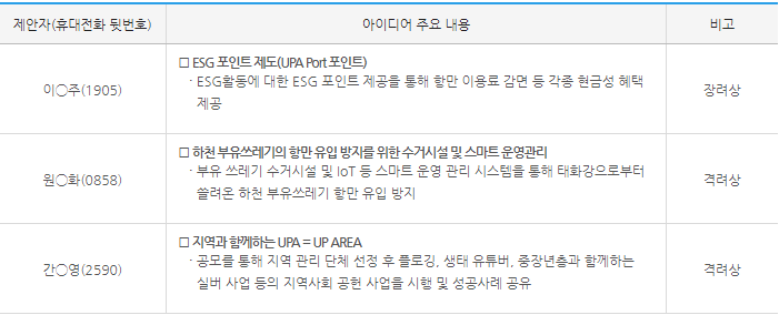2022년 울산항만공사 대국민 ESG-UP 아이디어 공모전 수상작 및 참가 상품 수령자 공지