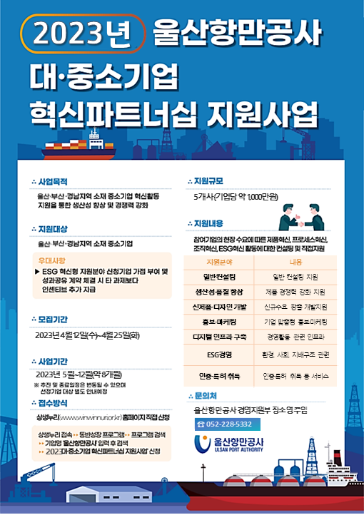 2023년 울산항만공사 대·중소기업 혁신파트너십 지원사업 모집 공고